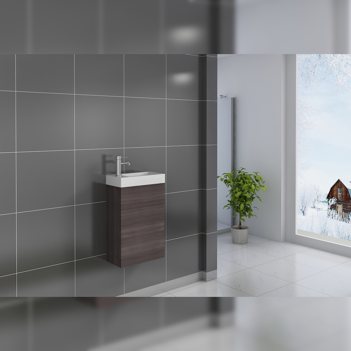 Möbelliebling Gäste-WC Waschbecken 40 x 22 cm trüffeleiche Vega