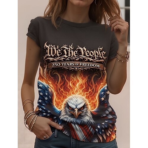 Maglietta Patriottica Giorno dell'Indipendenza per Donne T-Shirt Grafica Bandiera Vintage Elegante Casual Maniche Corte Collo Giro Regolare Tops Stampa Giornale Weekend Grigio Scuro Estate Primavera