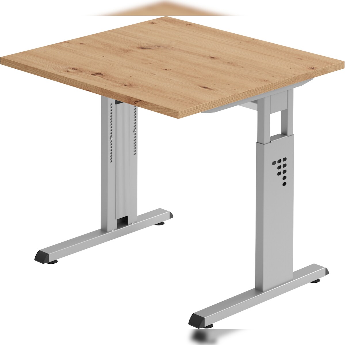 bümö höhenverstellbarer Schreibtisch O-Serie 80x80 cm in Asteiche, Gestell in Silber - PC Tisch klein für's Büro manuell höhenverstellbar,