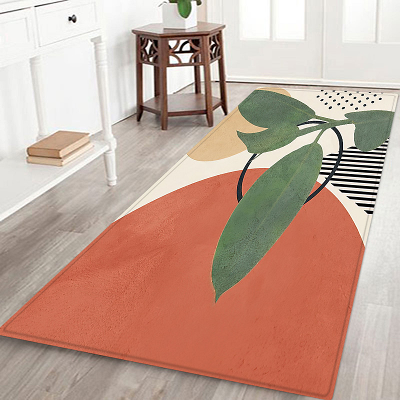 Hallway Runner Rug Minimalist Plant Geometric Art Flannel Fabric Printed Home Floor Decoration Mat Anti Slip Soft Door Mat Entrance Bathroom Floor Rug