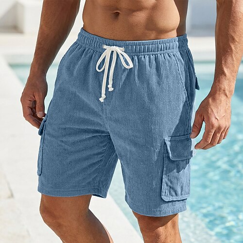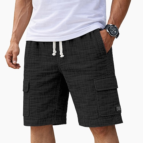 Herren Cargo-Shorts Shorts Sommershorts Strandshorts Freizeitshorts Kordelzug Elastischer Bund Einfarbig Texture Komfort Kurz Täglich Outdoor Streetwear Mode Retro Vintage Blau Schwarz Unelastisch