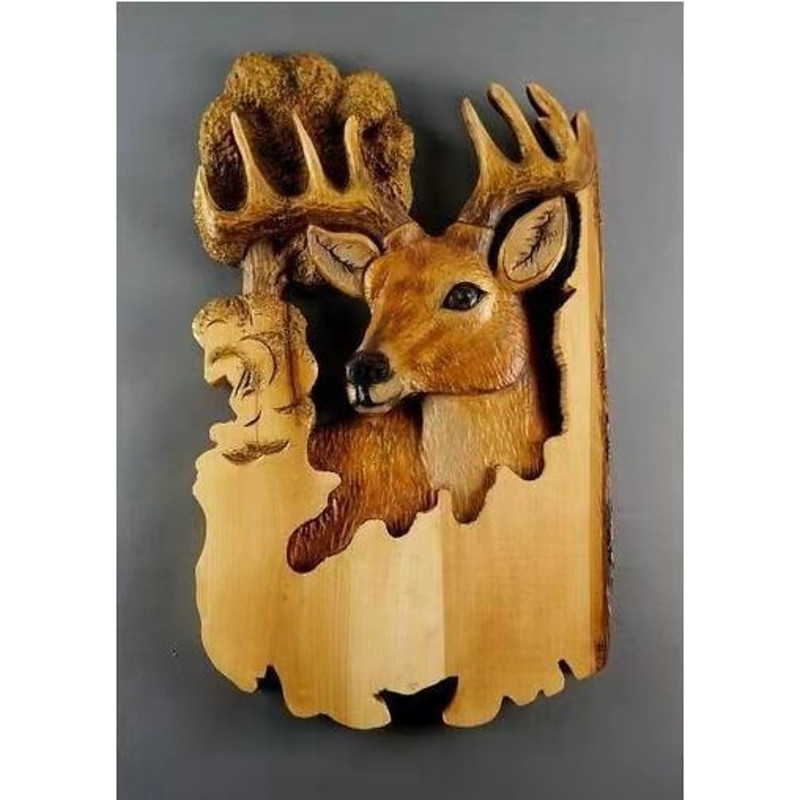 1pc Animal Carving Handcraft Wall Hanging Sculpture, Wood Raccoon Bear Deer Hand Painted Decoration, For Home Living Room