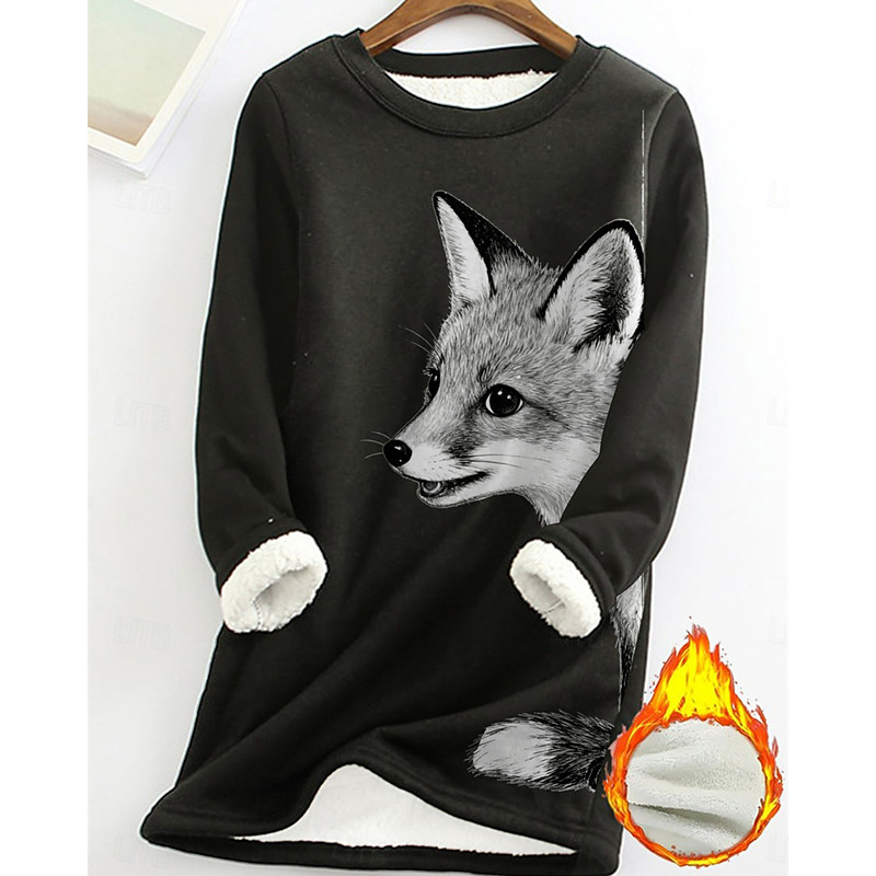 Women's Pullover Sweatshirt Animal Fashion Basic Casual Long Sleeve Crew Neck Long Tops Street Dailywear Casual Print Fleece Lined Black Yellow Pink Dark Pink Blue Fall Winter