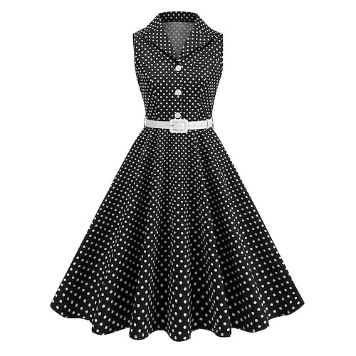 Elegante Classico Anni 1950 Midi Abito a Linea Abito Swing Vestito Svasato Senza maniche Pois Linea ad A Costume Per donna Carnevale San Valentino Mascherata Vacanza Abbigliamento Quotidiano Addio al