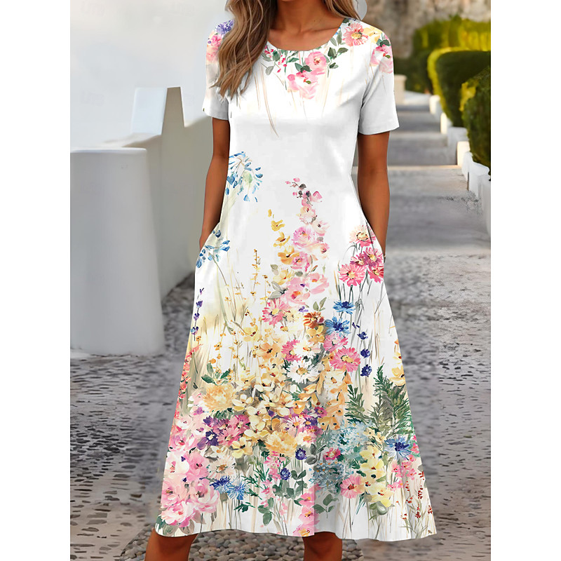 Women's Midi Dress T Shirt Dress Tee Dress Shift Dress Summer Dress Formal Vacation Daily Regular Fit Floral Short Sleeve Crew Neck Blue White Light Green Pink Summer Spring