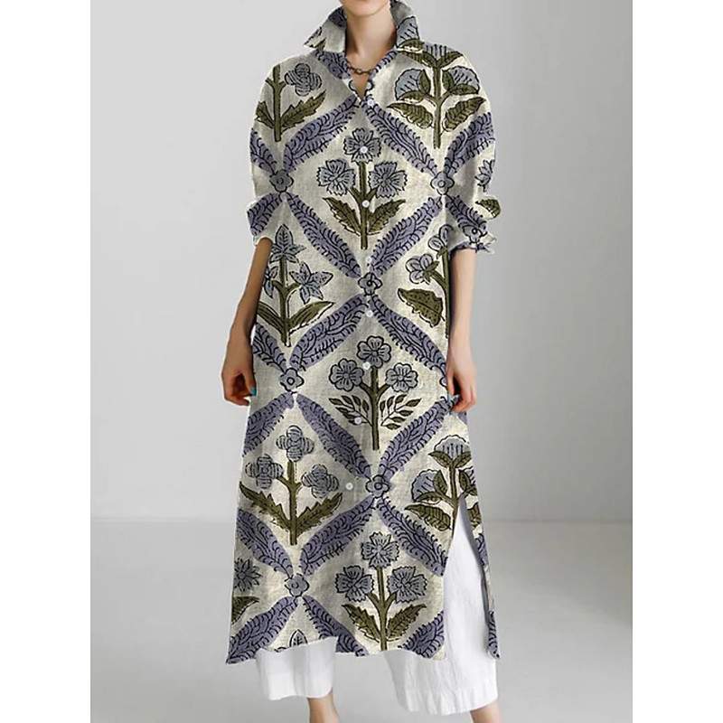 Women's Midi Dress Shirt Dress Casual Dress Fashion Modern Daily Beach Weekend Regular Fit Flower Long Sleeve Shirt Collar Blue White Yellow Orange Spring Fall