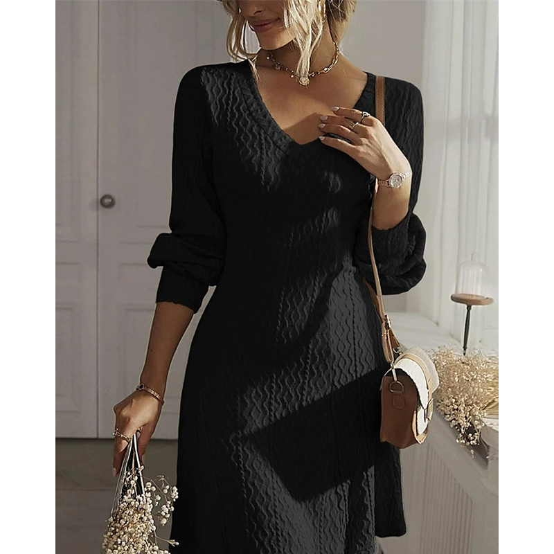 Women's Midi Dress Black Dress Party Dress Casual Dress Cocktail Dress Elegant Fashion Modern Daily Outdoor Beach Slim Plain Long Sleeve V Neck Blue Black White Spring Autumn
