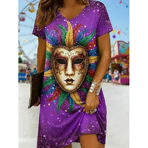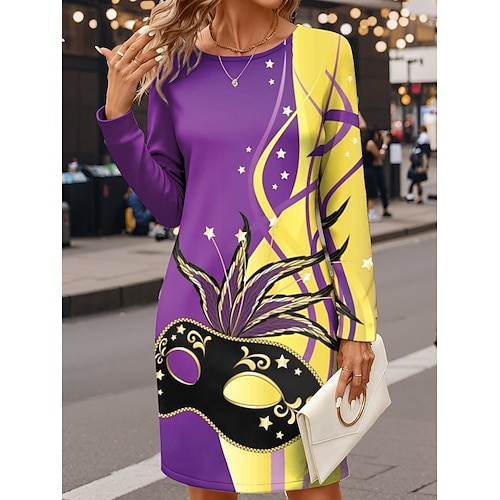 Vestito mini da donna Carnival abito a maglietta abito a T abito a linea casual adatto alla vita quotidiana grafica a maniche lunghe collo tondo nero viola verde primavera inverno