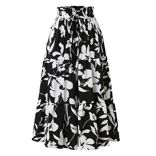 Per donna Gonna Elegante Moda Casual Midi Vita Alta Gonne Floreale Coulisse Stampato Micro-elastico Quotidiano Streetwear blu navy Rosso bordeaux Nero Verde Estate Spandex Poliestere