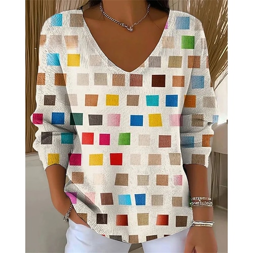 Per donna Maglietta Grafico A righe Piante Elegante Moda Carino Manica Lunga Girocollo Scollo a V Top Regolari Quotidiano Uscire Weekend Patchwork Stampato Bianco Giallo Rosa Arancione Verde