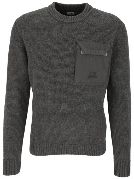 C.p. Company Wollpullover mit Brusttasche Gr. M in grau | Außengewebe: 80% Wolle