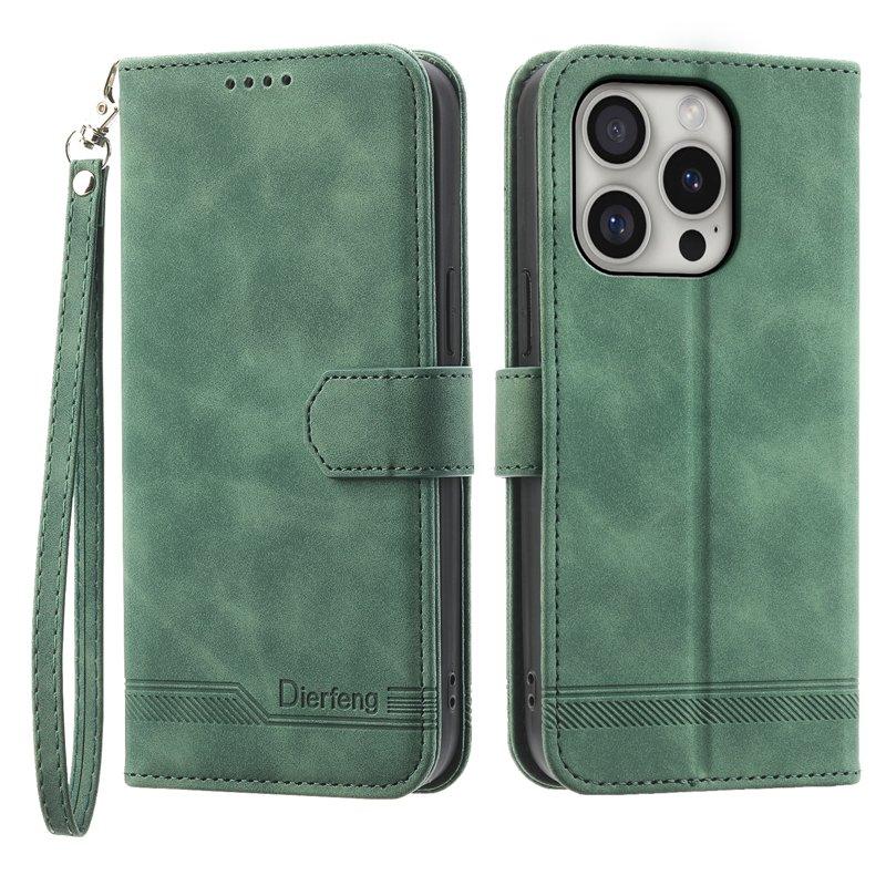 DIERFENG DF-03 iPhone 16 Pro Plånboksfodral Konstläder - Grön