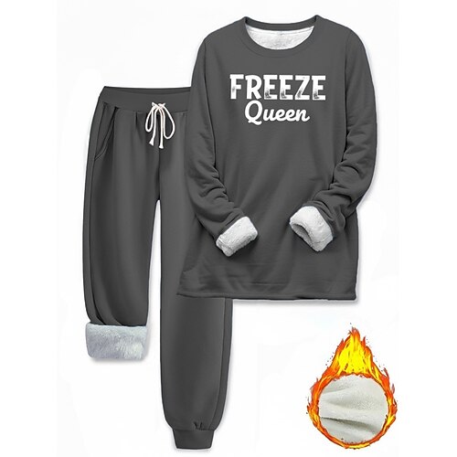 Per donna Elegante Caldo Moda Set da due pezzi Tuta Set di Pantaloni Manica Lunga Manica a Vescovo Girocollo Grafico Lettera Stampato All'aperto Vacanza Quotidiano Nero Rosa Rosa scuro Primavera