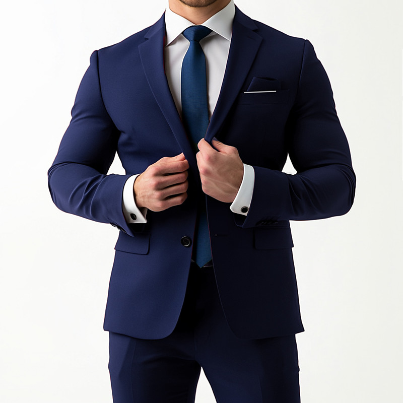 Men's Business Suits Notch Lapel Burgundy Navy Blue Formal WorkWear Solid Colored Standard Fit 2 Piece Single Breasted Two-buttons