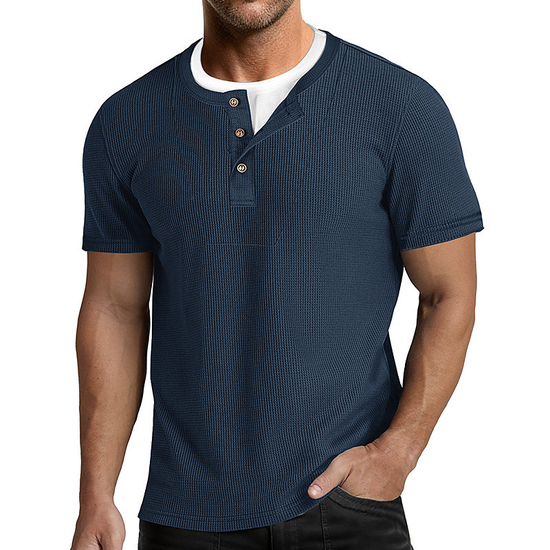 Men's Waffle Henley Shirt Tee Cotton Blend T-Shirt Short Sleeve Color Block Plain Fashion Designer Casual Color Block Buttons Fake two piece Crew Neck Henley Casual Daily Outdoor Summer All Seasons