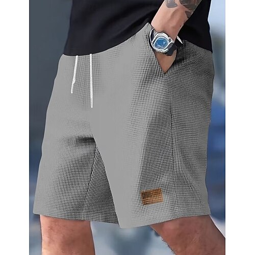 Per uomo Pantaloncini Waffle Shorts Pantaloncini casual Tasca Elastico in vita Semplice A quadri Comodità Traspirante Lunghezza al ginocchio Casuale All'aperto Vacanza Vacanza Moda Nero Bianco