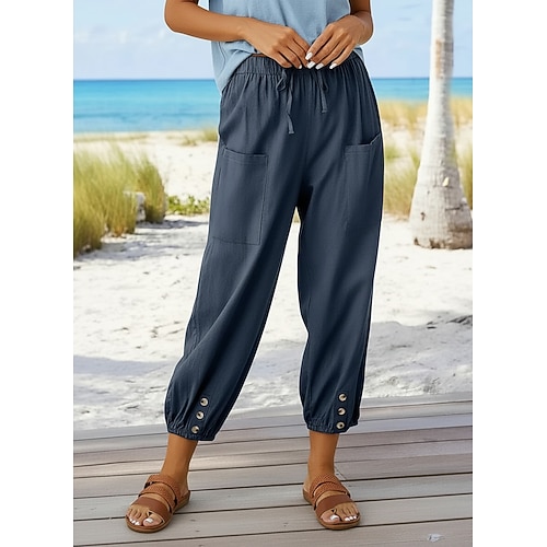 pantaloni capri da donna 100% cotone pantaloni estivi casual comodi tinta unita tasca elastico vita pantaloni vacanza casa tutti i giorni nero bianco verde militare blu navy blu estate primavera autunno
