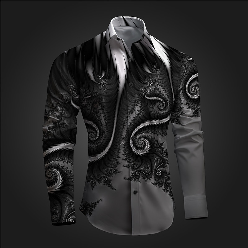 Men's Button Up Shirt Printed Shirts Long Sleeve Subcultural Vacation Party Street Spring Summer Turndown Print Button-Down Red Blue Purple Gray