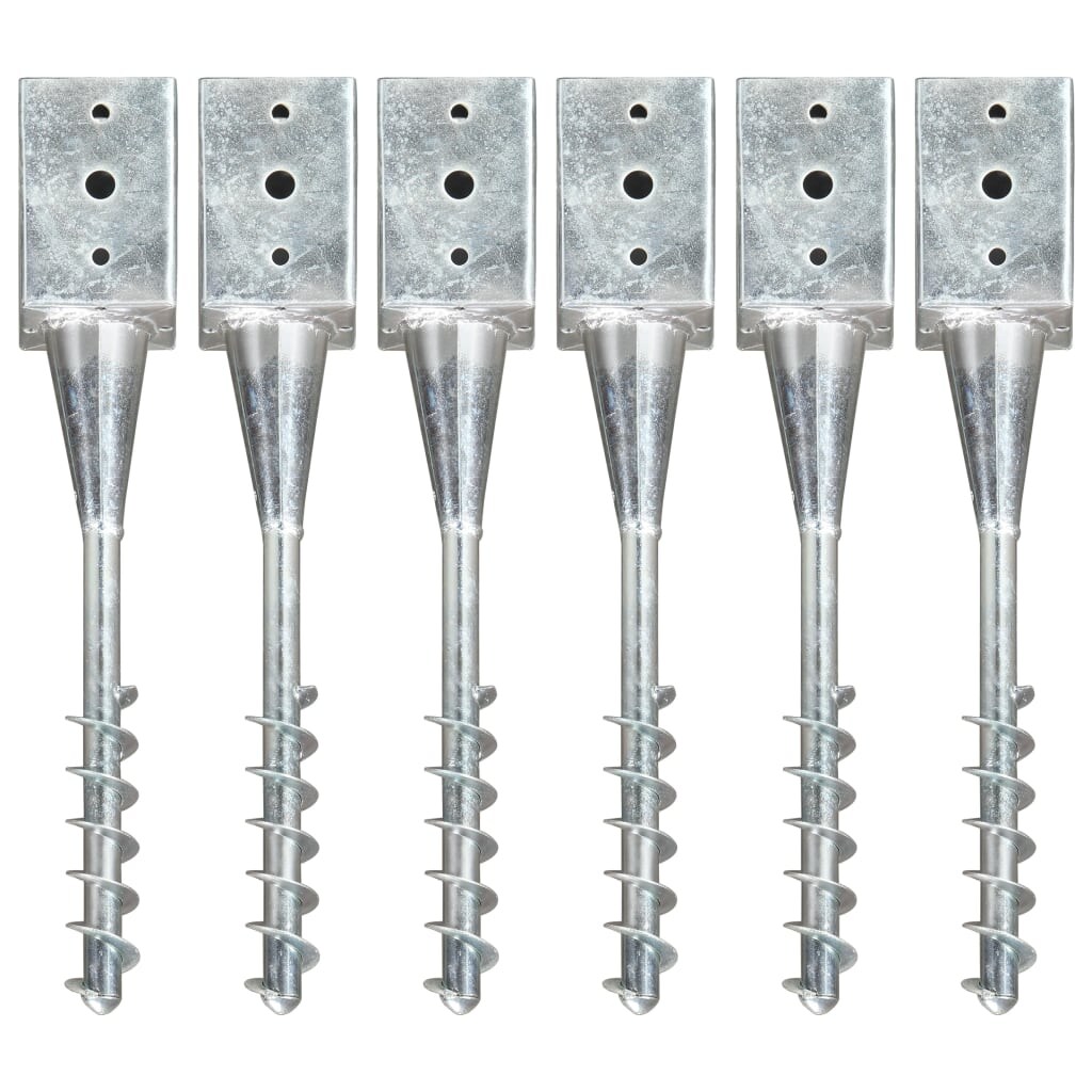 vidaXL Erdspieße 6 Stk. Silbern 9×9×56 cm Verzinkter Stahl