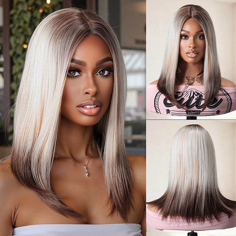 Synthetic Wig Straight Natural Straight Middle Part Wig 16 inch Brown / White Synthetic Hair 16 inch Women's Soft Mixed Color
