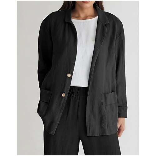 giacca da donna in cotone e lino casual comoda traspirante bottoni elegante quotidiano semplice retrò tinta unita casual regolare revers a lancia vestibilità ampia manica lunga capospalla nero verde