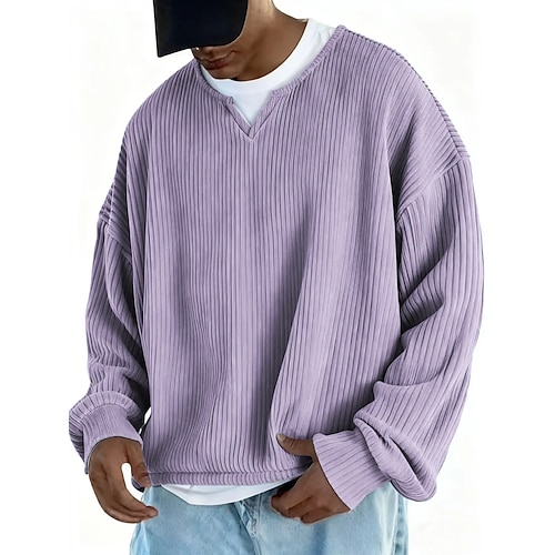 Per uomo Camicia di Velluto a Coste Maglietta Manica Lunga Scollo a V Autunno Autunno Inverno Tinta unica Quotidiano Casual Stile da Strada Oversize Base Ampio Casuale All'aperto Streetwear Blu