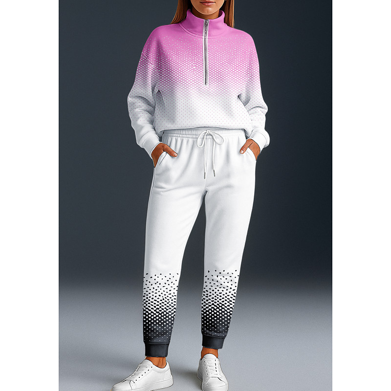 Women's Elegant Warm Fashion Two Piece Sets Tracksuit Pants Sets Long Sleeve Bishop Sleeve Crew Neck Graphic Letter Portrait Print Outdoor Vacation Daily Black Pink Dark Pink Spring Regular Fit