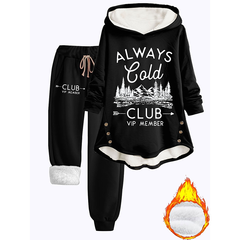 Women's Warm Daily Two Piece Sets Tracksuit Pants Sets Long Sleeve Hooded Graphic Plain Letter Drawstring Print Casual Daily Black Dark Pink Red Fall Regular Fit