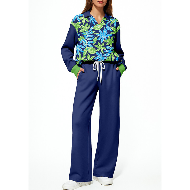 Women's Sweatshirt Tracksuit 2 Piece Tracksuit Drawstring Pocket Floral Sweatshirt and Pants Athletic Clothing Set Clothing Suit Fall Blue Vocation Outdoor Travel Lightweight Fashion Long Sleeve Sport