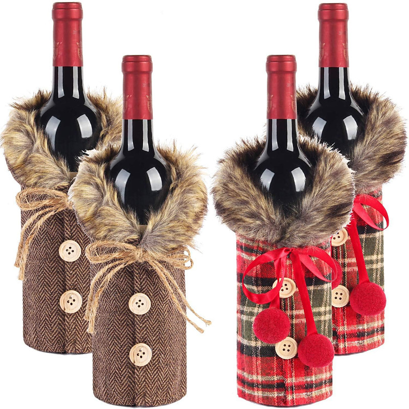 4 Pack Christmas Wine Bottle Covers, Striped and Plaid Skirt Wine Bags, Holiday Red Wine and Champagne Bottle Decorations, Xmas Table Accessories, Party Supplies, Best-Selling Festive Home Decor