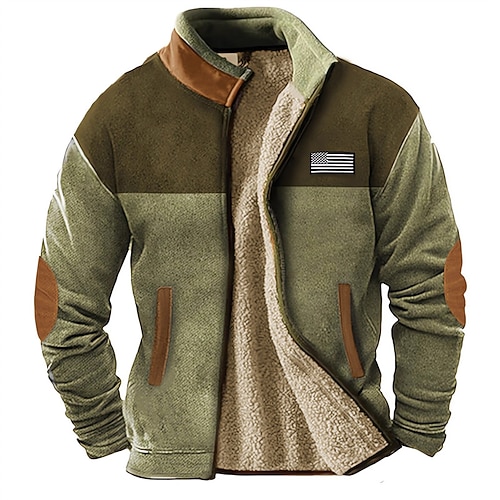 Per uomo Giacca Invernale Giacca in Pile Giacca Casual Vacanza Quotidiano Calore Termico Tasca Pile Inverno Blocco di colori Bandiera Nazionale Moda Streetwear Colletto Mao Regolare Arancione Marrone