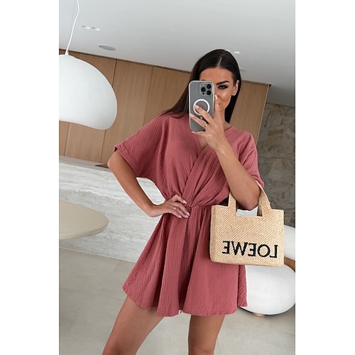 Per donna Pagliaccetto Casual Tinta unica Mezza Manica Corte Scollo a V Elastico in vita Vita alta Quotidiano Vestibilità regolare Nero Bianco Rosa Estate