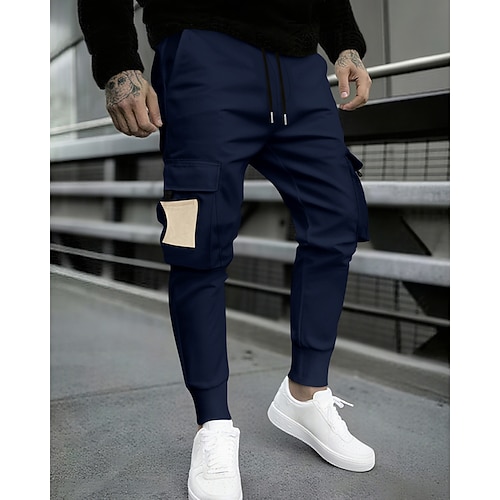 Per uomo Pantaloni Cargo Joggers Pantaloni Coulisse Elastico in vita Multi-tasche Tinta unica Antivento Comodità Quotidiano All'aperto Ferie Streetwear Elegante Nero Verde militare