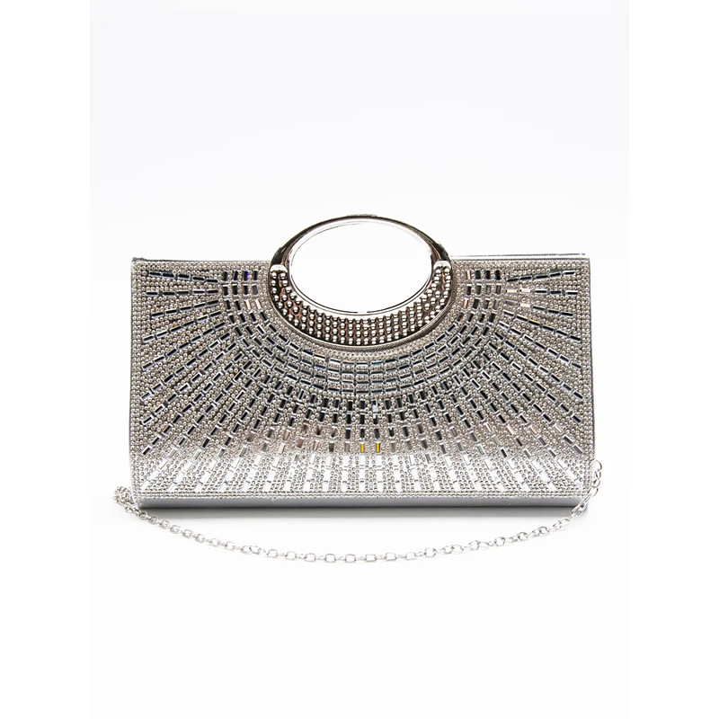Women's Elegant Crystal Evening Handbag with Silver Chain, Beaded Detail, and High-Quality Zipper, Perfect for Weddings, Parties and Formal Events.
