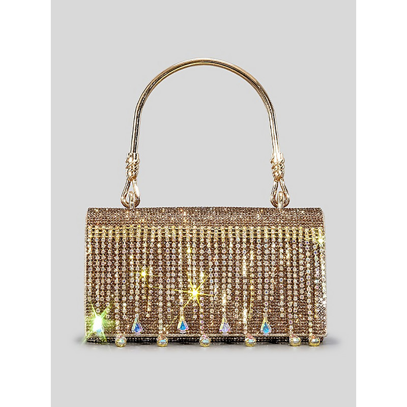 Glamorous Gold Crystal Evening Clutch with Round Handle – Rhinestone Handbag for Women, Perfect for Weddings, Parties and Formal Events
