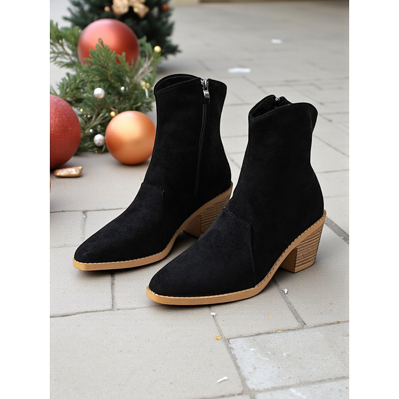 Women's Red Suede Ankle Boots with Zip Closure and Chunky Block Heel, Comfortable and Stylish, Perfect for Christmas, Winter Outings and Daily Events