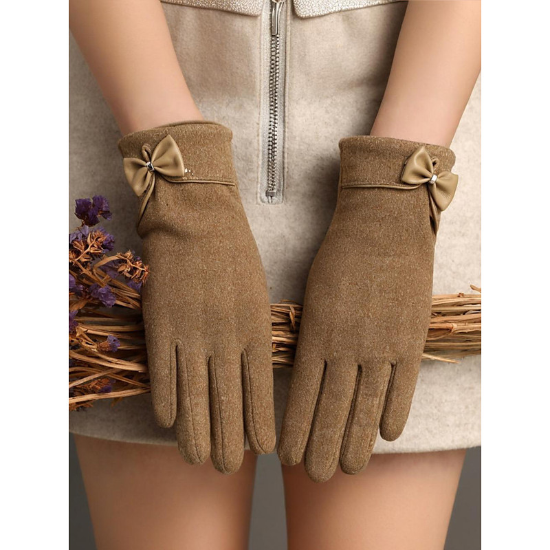 Women's Christmas Touchscreen Gloves – Warm Polyester Material with Cute Bow Design, Perfect for Holiday Parties Winter Wear