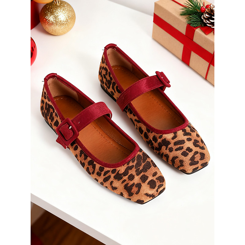 Women's Leopard Print Mary Jane Flats with Velvet Buckle Strap – Vintage Style, Perfect for Christmas, Holiday Parties and Daily Wear