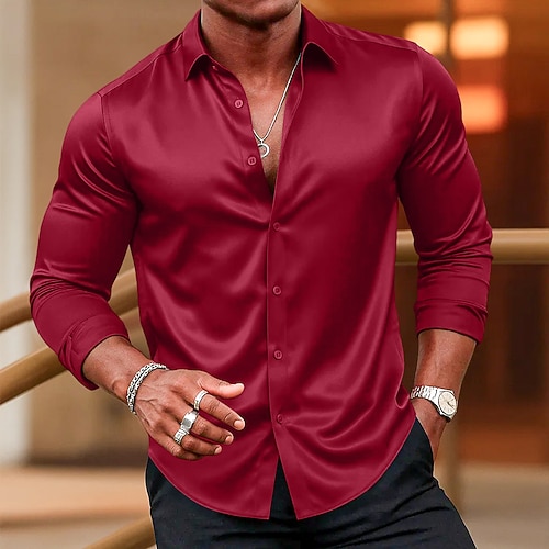 Per uomo Camicia da ballo Camicia da discoteca Camicia in raso di seta Tinta unica Matrimonio Feste Argento Nero Vino Blu Manica lunga Colletto Abbigliamento Con lustrini