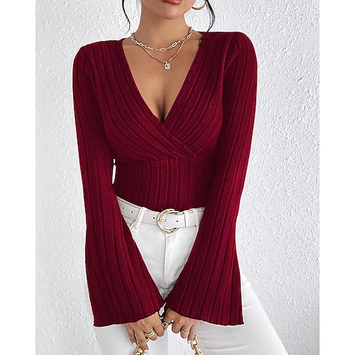 Per donna Blusa Tinta unica Semplice Elegante Vintage Sexy Manica Lunga Manica a Campana Scollo a V Top Regolari Quotidiano Ferie Uscire Nero Vino Autunno Inverno