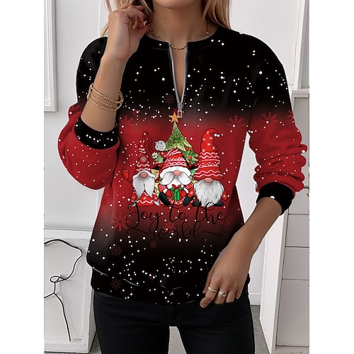 Felpa Natalizia da Donna Fiocco di Neve Pullover Felpe con Zip Grafica Moda Casual Manica Lunga Collo Rotondo Collo Regolare Daily Wear Casuale Stampa con Cerniera Vino Autunno Inverno