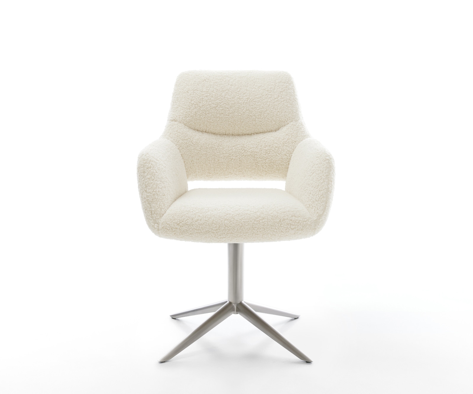 DELIFE Draaistoel Yago-Flex met armleuning teddy beige kruispoot roestvrij staal 360° draaibaar rocker-functie pocketveer kern