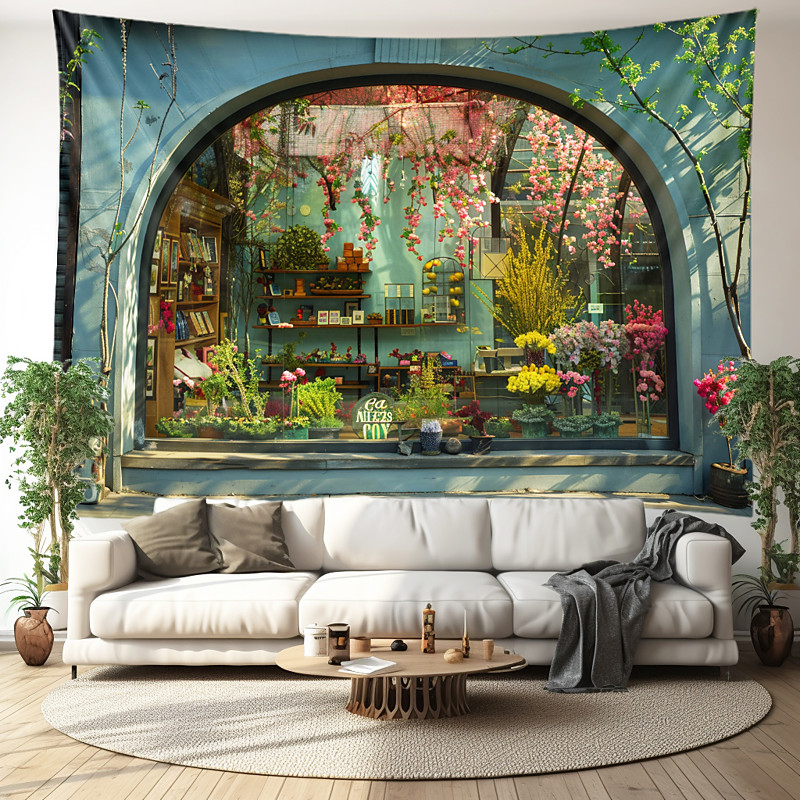 Window Forest View Hanging Tapestry Wall Art Large Tapestry Mural Decor Photograph Backdrop Blanket Curtain Home Bedroom Living Room Decoration