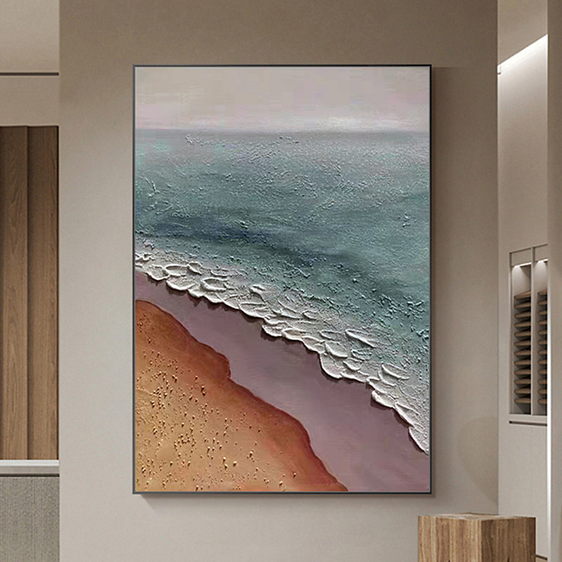 Mintura Handmade Texture Sea Wave Oil Paintings On Canvas Wall Art Decoration Modern Abstract Beach Scenery Picture For Home Decor Rolled Frameless Unstretched Painting