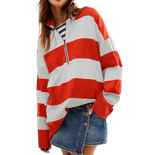 Per donna Felpa pullover Pullover Maglione Mezza cerniera Manica Lunga Top Athleisure Inverno A righe Escursionismo Vacanze Corsa abbigliamento sportivo Abbigliamento sportivo Rosso bordeaux Nero Rosa