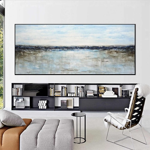 Leinwand dickes modernes Ölgemälde blaue und graue Leinwand Acryl 100 % handgemaltes einfaches abstraktes Ölgemälde moderne Luxuskunst