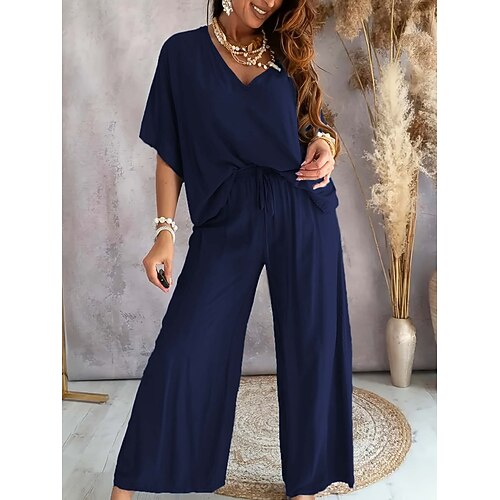 Per donna Set da due pezzi Set di Pantaloni Bolero Top Manica Corta Scollo a V Semplice Moda Streetwear Casuale Quotidiano All'aperto Nero Verde militare Blu marino Estate Vestibilità comoda