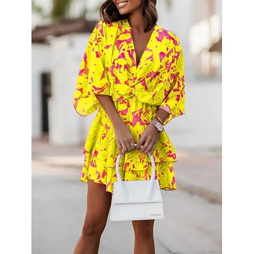 Per donna Mini abito Mini Abito Abito Boho Abito Vintage Vestito Casual Elegante Moda Moderno All'aperto Vacanza Uscire Vestibilità regolare Vestibilità comoda Grafico Manica Corta Scollo a V Blu