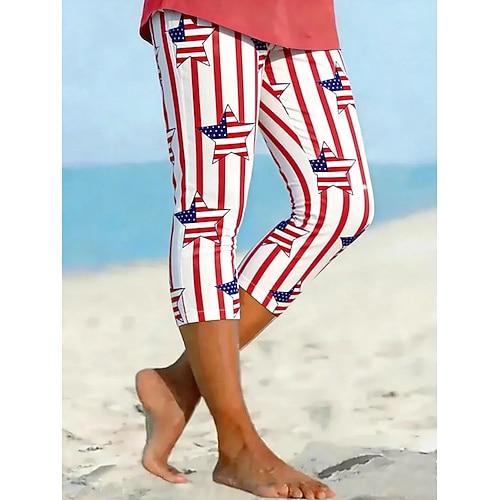 pantaloni capri da donna per il giorno dell'indipendenza americana, leggings, eleganti, elasticizzati, a vita media, lunghi fino al polpaccio, con stampa grafica della bandiera nazionale, comodi,