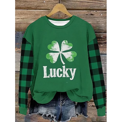 Felpa da donna per il Giorno di San Patrizio lucky pullover shamrock casual maniche lunghe collo a giro top regolari stampa street quotidiana verde autunno inverno